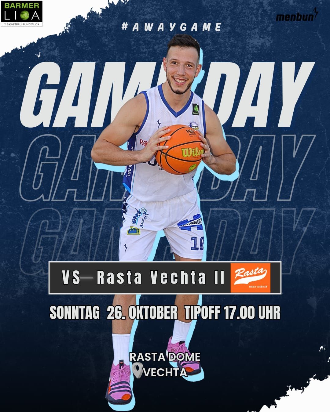 Für den aktuellen Tabellenzweiten der BARMER 2. Basketball Bundesliga ProB Nord geht es am Sonntagabend nach Vechta zum Farmteam des Bundesligisten Rasta Vechta. Das jüngste Team der Liga konnte bisher noch keinen Sieg feiern, ist allerdings komplett besetzt nicht zu unterschätzen. Die ersten drei Spiele der Saison musste man direkt gegen drei Topteams der Liga antreten und konnte dort in langen Phasen der Spiele gut mitspielen. Am Ende mussten sie sich aber der Erfahrung der Gegner geschlagen geben. Letztes Wochenende musste Coach Horst Harm-Ubbo in Rostock beim Duell der Farmteams eine deutliche 84:61 Niederlage hinnehmen. Die Gastgeber werden am Sonntag alles reinlegen, um endlich den ersten Saisonsieg einzufahren und dies kann Rasta wohl mit kompletten Kader angehen, da das Bundesligateam und Kooperationspartner Artland Dragons beide bereits am Samstag im Einsatz sind. Ein auffälliger Akteur in dieser noch jungen Saison ist der von Bayern München gekommene Small Forward Ivan Wolf, der im Schnitt 14,5 Punkte und 4,8 Rebounds pro Spie auflegt. Vier weitere Spieler punkten bisher im Schnitt zweistellig, darunter befinden sich das deutsche Centertalent Fynn Lastring (11,5), Pointguard Roy Krupnikas (11,4) und die beiden erst 17-jährigen Moritz Grüß (10,8) und Epke Kruthaup (10,4). Zu den vielen starken Talenten kommen mit Moritz Dresing, Malte Giljan und Kevin Smit drei erfahrene Spieler hinzu, die das Team führen sollen. Im Rasta Dome, in dem die Heimspiele ausgetragen werden, wird das junge Team im Schnitt von knapp 300 Fans unterstützt.